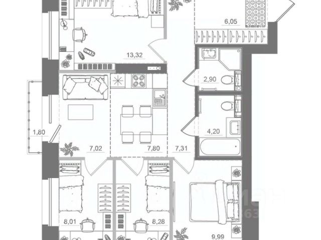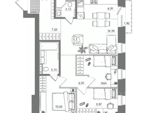 Квартира теплая, светлая, окна выходят не на подъезд. Высокий первый этаж, просторный коридор, изолированные комнаты 17,1 кв.м и 16,3 кв.м, кухня 9,4 кв.м. В квартире остается кухонный гарнитур, шкаф-купе в спальне, втроенный шкаф в коридоре, водонагреватель.