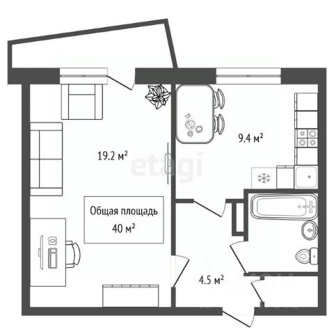 Квартира имеет грамотно продуманную планировку на две стороны, которая позволяет выделить личное пространство для хозяев и зону для совместного общения.