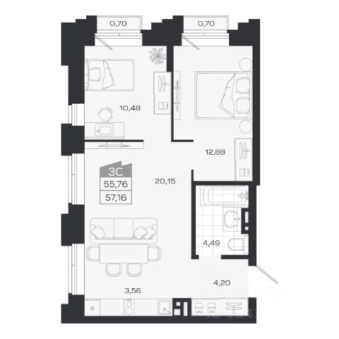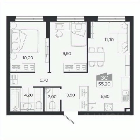 Продаётся 3-комнатная квартира в строящемся доме (Дом 20), срок сдачи: IV-кв. 2028, общей площадью 55.76 кв.м., на 3 этаже. Расположение, транспортная доступностьНовый жилой комплекс комфорт-класса "Город-парк Ясный Берег" строится на левом берегу реки Обь, но при этом совсем недалеко от центра Новосибирска. Новый микрорайон расположится рядом с проездом Энергетиков, который переходит в Дмитровский мост. Добраться до самого центра мегаполиса совсем несложно: дорога на автомобиле займет всего десять минут в зависимости от загруженности магистралей (расстояние до исторического центра чуть больше 4 км).На общественном транспорте до центральных районов можно доехать за двадцать пять минут (время в пути зависит и от дорожного трафика, от выбранного маршрута и точного места назначения). В шаговой доступности от ЖК "Город-парк Ясный Берег" расположена остановка "Мост", откуда курсируют автобусы и маршрутные такси в разные районы Новосибирска.Рядом с новым ЖК проходят крупнейшие транспортные артерии города Октябрьский мост, проезд Энергетиков, улицы Ватутина, Котовского, Станционная и Немировича-Данченко, так что добраться в любую точку города не составит труда как на машине, так и на общественном транспорте.ИнфраструктураЛенинский район, где возводится "Ясный Берег", считается престижным, так что уже сейчас новые владельцы квартир города-парка смогут наслаждаться комфортной городской жизнью в тихом микрорайоне. В шаговой доступности: детские садики, общеобразовательные школы, магазины, аптеки, сетевые супермаркеты, кафе, аптеки, медицинские учреждения. За пять минут можно доехать до строительного гипермаркета "Леруа Мерлен". Вокруг много мест для отдыха, занятий спортом, прогулок с детьми.Впрочем, согласно концепции, в недалеком будущем жителям "Города-парка Ясный Берег" не понадобится часто покидать пределы любимого микрорайона, поскольку новый жилой комплекс будет представлять собой "город в городе". На территории ЖК будет большой парк с пешеходными и велосипедными дорожками, местами для отдыха, игровыми зонами. Отличительной особенностью станет детская гоночная трасса точный аналог сочинской "Формулы-1".На территории "Города-парка Ясный Берег" построят детские площадки с современным игровым оборудованием, школы, развивающие секции и кружки, детские сады (один построен и уже работает). В городе-парке будут и огороженные места для курения, и территории для прогулок с домашними питомцами. В микрорайоне предусмотрено много зон с wi-fi.Надежность застройщикаЗастройщиком проекта является СК "Аква Сити", основанная в 2012 году. Генеральным подрядчиком компания "Метаприбор". В 2016 году "Метаприбор" занял первое место в области по объемам введенного в эксплуатацию жилья (благодаря своевременной сдаче двух корпусов в ЖК "Город-парк Ясный Берег").Эти компании осуществляют полный цикл строительства от выбора участков под застройку до внутренней отделки, ввода в эксплуатацию и благоустройству территории новых ЖК.И "Аква Сити", и "Метаприбор" имеют хорошую р Квартира в микрорайоне Лесоперевалка в городе Новосибирск.