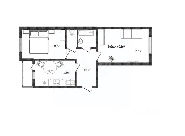 Общая площадь 43,2 кв.м, жилая площадь — 22,4 кв.м, просторная кухня — 11,3 кв.м. Квартира буквально евродвушка. Квартира расположена на 2 этаже 6-этажного дома, высота потолков 2,7 метра. Идеальный выбор для тех, кто ценит комфорт и современное жилье.