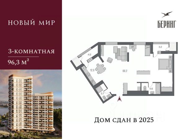 Квартал открытий "Беринг", с любовью созданный компанией "Новый мир" состоит из четырех зданий переменной этажности и расположен на первой береговой линии реки Обь в старом центре Новосибирска - 10 минут пешком до метро Гарина-Михайловского.. Квартал спроектирован так, чтобы выгодно выделяться среди окружающего пейзажа Железнодорожного района Новосибирска. Современная архитектура комплекса выполнена в сочетании технологии вентилируемого фасада и облицовки клинкерным кирпичом. Беринг - настоящее открытие для тех, кто хочет совместить близость к центру города с преимуществами жизни на правом берегу Оби. В общественной зоне квартала организовано зеленое сердце квартала. Благоустроенная территория для отдыха и социальной активности жителей квартала и ближайших домов. Виды на реку Переменная высотность зданий обеспечивает вид на реку для максимального количества квартир: любуйтесь закатами прямо из своей квартиры. Ниши под системы кондиционирования Специальное помещение для кондиционеров с доступом с лоджии каждой квартиры сохранит первозданную эстетику фасада. Балконов нет, есть лоджии. Без ступеней и пандусов Доступ во входные группы расположен на уровне земли, чтобы создать удобство мамам с колясками и людям с ограниченными возможностями здоровья. Многоуровневое благоустройство Перепад рельефа открывает восхитительные виды на берег, прибрежную зелень и водную гладь. Выход на береговую линию С придомовой территории комплекса организован выход на берег реки Обь для ваших утренних пробежек и вечерних прогулок. Архитектурная подсветка фасада Подсветка фасада сделает жилой квартал еще одним украшением города, заметным со стороны реки, Димитровского моста и улицы Владимировской. Продам квартиру с отделкой в готовой новостройке рядом с метро Площадь Гарина-Михайловского.