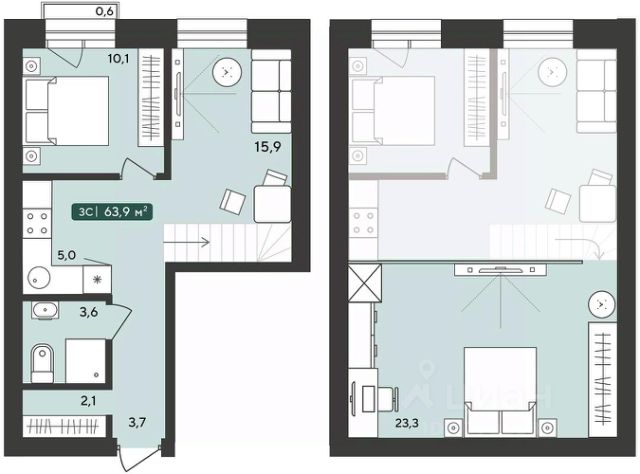 Двухуровневая ЭЛИТНАЯ квартира с АВТОНОМНЫМ отоплением и БОЛЬШИМИ комнатами!!!
