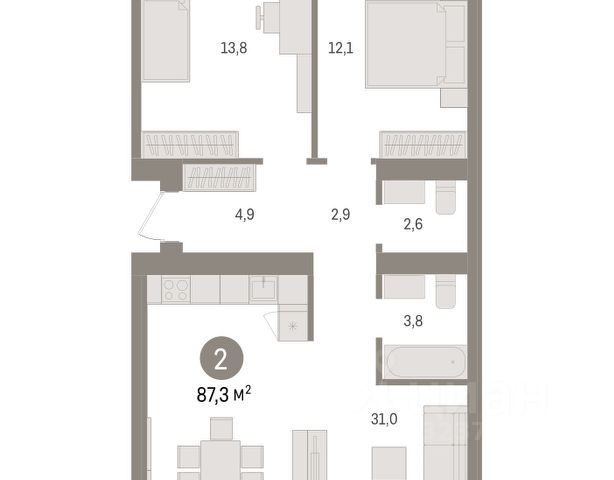 2-комн. квартира с предчистовой отделкой в ЖК "Пшеница" на 5 этаже. Общая площадь: 74.46 кв.м. Высота потолков 2.7 м. Дом монолитный, многоподъездный, переменной этажности, от 6 до 9 этажей. Квартира находится в 1-й секции высотой 8 этажей в корпусе 2-1. На этаже 5 квартир. В подъезде 1 пассажирский и 1 грузовой лифт. Окончание строительства - 2 квартал 2026 года. Оформление сделки по договору долевого участия. Квартира с кухней-гостиной и двумя спальнями в жилом районе "Пшеница". Особенности планировки: балкон, вид во двор, второй санузел, предчистовая отделка, разнесённые спальни. квартиры в нашей базе: ПШЦ02.1-Ж1.5.1. "Пшеница" расположена в третьем микрорайоне посёлка Краснообск, на пересечении улицы Центральная и Советского шоссе. Посёлок был создан в 1970 году. Архитекторы создали в Краснообске все условия для научной деятельности, быта, культурного развития, отдыха и поддержания здоровья жителей. Но их проект так и не был полностью реализован. Сегодня рядом с проектом "Пшеница" расположены остановки транспорта, выезды на транспортные магистрали. До Бугринского моста — 15 минут на автомобиле. До станции метро "Площадь Маркса" — 35 минут на автобусе, 20 минут на автомобиле. В 1520 минутах от жилого района расположен крупный ТРЦ "Мега". Внутри посёлка сформирована необходимая инфраструктура: лицей, школы, детские сады, больница, поликлиника, частные медицинские центры, магазины, спортивные клубы. Рядом находится лесопарк им. академика Синягина. Район "Пшеница" — это квартальная среднеэтажная застройка с закрытыми от машин безопасными дворами. В основу проекта мы заложили три принципа. Первый — разнообразие и плотность. Для нас важно создать среду, где человек в шаговой доступности мог бы получить любой сервис. Второй принцип — сохранение истории места, уважение к идеям первых архитекторов ВАСХНИЛа и локальной идентичности. Достопримечательностью района станет круговой бульвар. Третий принцип — связанность. Район постепенно станет единым целым за счет организации плотной сети вело- и пешеходных маршрутов, формирования разнородных общественных пространств. Если Вы - риелтор, пожалуйста, за более подробной информацией обратитесь на горячую линию на нашем официальном сайте. #ZMZ7ff Купить квартиру первичка в Новосибирском районе Новосибирской области.