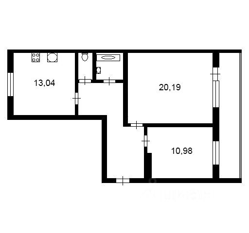 Из окон квартиры открывается прекрасный вид на реку и лес. Квартира с большой кухней гостиной площадью 15 кв.м. и двумя жилыми комнатами 16,60 и 10,40 кв.м.