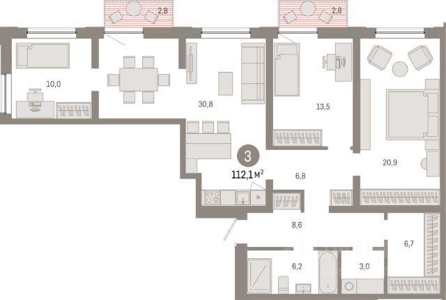 Продаётся 3-комнатная квартира в строящемся доме (Дом 44), срок сдачи: III-кв. 2026, общей площадью 112.1 кв.м., на 8 этаже. Микрорайон "Европейский берег" расположен на правом берегу Оки, между Бугринским и Октябрьским мостами, в пятнадцати минутах езды от центра Новосибирска. Прямой доступ на Большевистскую улицу (магистраль Р-256 "Чуйский тракт") обеспечивает удобный и быстрый путь в любой район города. По трассе можно совершить путешествие через Алтай до границы с Монголией.