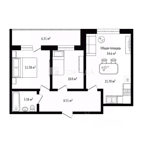 • ✅ Минимальная площадь: 26,3 м²