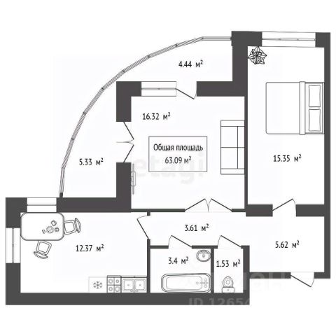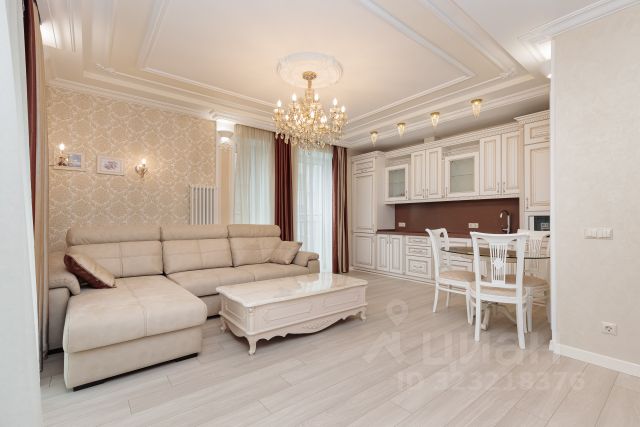 Просторная кухня-гостиная 26 кв.м. с выходом на балкон, спальня 12,5 кв.м с выходом на балкон, кабинет или детская комната (10 кв.м.) В квартире 2 с/у. Квартира полностью меблирована и готова к проживанию.