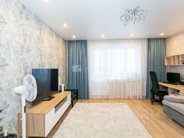 В квартире выполнен качественный ремонт. Лоджия остеклена пластиковыми стеклопакетами, утеплена и обшита, используется как дополнительное помещение. Полы на лоджии с подогревом. В комнатах стены выровнены, поклеены обои, в прихожей стены частично отделаны декоративным камнем. На полу ламинат в кухне-гостиной, спальне и частично в прихожей. Во второй спальне пол керамогранит (с подогревом) и в прихожей керамогранит (без подогрева). Санузел раздельный, выложен кафельной плиткой. В ванной комнате также установлен подогрев пола, что дает дополнительный комфорт.