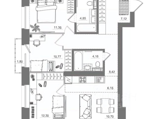 * Возможность организовать просторную кухню-гостиную и три отдельные спальни — идеальный вариант для семьи.
