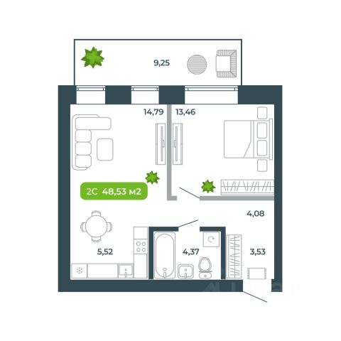 Дом, где каждый найдет своё место, ощутит спокойствие и комфорт. Современный малоэтажный квартал в Кольцово в гармонии с природой, где вы будете наслаждаться живописными видами, прогуливаться по благоустроенным аллеям или лесным тропинкам. В квартале продумано все для спокойной и комфортной жизни: Свободные планировочные решения, чтобы каждый мог организовать своё комфортное пространство; Коворкинги и мягкие зоны ожидания на первом этаже, где вы сможете спокойно работать или устраивать деловые встречи; Просторные колясочные и лапомойки для питомцев - забота о каждом члене семьи; На -1 этаже мы расположили эргономичные кладовые, чтобы организовать удобное хранение сезонных вещей. Продам квартиру-студию 50 м2 (квадратных метров) в Новосибирской области.