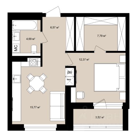 • ✅ Минимальная площадь: 48,4 м²