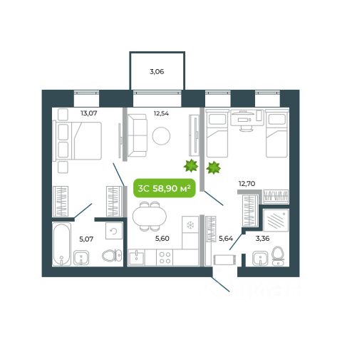 Одна из лучший планировок в доме! Просторная 2-комнатная квартира в ЖК "Возрождение" от Сибирь-Инвест — уникальная планировка и премиальное качество жизни в центре Новосибирска! Площадь: 59,3 м² (жилая — 34,4 м²) Этаж: 6 Формат: 2-комнатная квартира (европланировка) с кухней-гостиной, двумя санузлами и лоджией О квартире: Большая кухня-гостиная с выделенной нишей под кухонный гарнитур: удобно, стильно, функционально Две изолированные комнаты — отличное решение для семьи, пары или аренды Закруглённые стены создают особую атмосферу и обеспечивают обилие естественного света Панорамные окна в обеих комнатах + выход на застеклённую лоджию Грамотное зонирование: приватная часть квартиры (спальня и основной санузел) удалена от входной группы Два санузла: основной с ванной и дополнительный — идеальный гостевой Широкий коридор — идеально под гардеробную. О жилом комплексе "Возрождение": Надёжный застройщик Сибирь-Инвест — один из лидеров в Новосибирске Двухуровневый подземный паркинг Оригинальная архитектура, бесшумные скоростные лифты Уютные закрытые дворы, современное благоустройство и детские площадки Просторные планировки, ориентированные на индивидуальный и семейный комфорт Локация: Центр города, при этом — тишина и зелень 900 м до метро Площадь Калинина Всего 600 м до зоопарка и ботанического сада В пешей доступности: школы, детские сады, магазины, поликлиники Удобный выезд на ключевые магистрали города Бонус: Можно приобрести парковочное место одновременно с квартирой! Звоните и записывайтесь на просмотр. Ваш комфорт начинается с правильного выбора — и он перед вами. Арт. 104148271 Номер объекта: #1/541771/24710 Квартира-студия, примерная площадь 60 м2 в Новосибирской области.