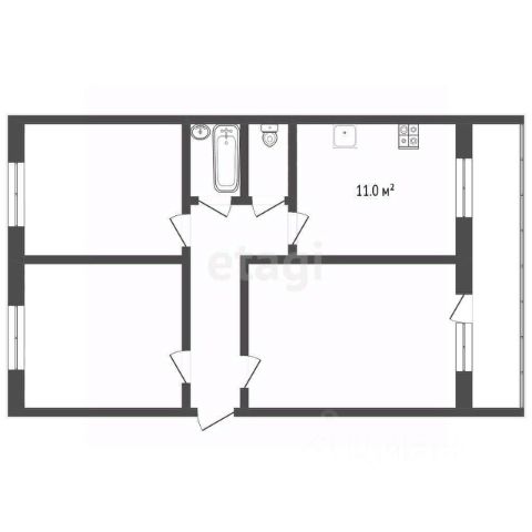 В квартире новая акриловая ванна-вкладыш, бойлер, кухонная вытяжка, мягкая мебель и новые шкафы.