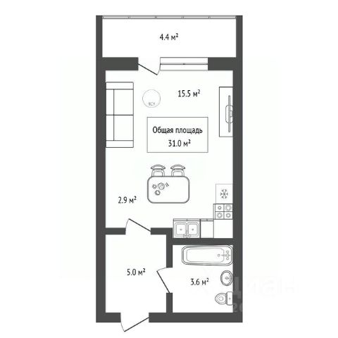 В Квартире выполнен косметический ремонт в приятных светлых тонах, зал совмещен с кухонной зоной, что предоставляет достаточно пространства для комфортного проживания - УЗАКОНЕНО!