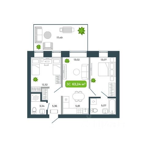 Квартира полностью оборудована мебелью и техникой для комфортного проживания или сдачи в аренду; в хорошем техническом и эстетическом состоянии.
