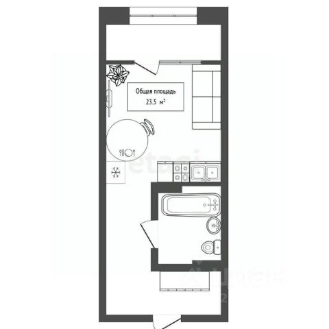 1-комн. студия от застройщика с предчистовой отделкой в ЖК "Город-на-озере" на 11 этаже. Общая площадь: 26.82 кв.м., площадь гостиной 15 кв.м., из которых 5 кв.м. выделено под кухонную зону. Все окна выходят на одну сторону. В квартире один балкон, один совмещенный санузел. Высота потолков 3.0 м.