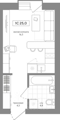 Просторная 1-комн. студия с предчистовой отделкой в ЖК "Пшеница" на 2 этаже. Общая площадь: 20.68 кв.м., площадь гостиной 12.8 кв.м., из которых 5 кв.м. выделено под кухонную зону. Все окна выходят на одну сторону. В квартире один балкон, один совмещенный санузел. Высота потолков 2.82 м. Дом монолитный, многоподъездный, переменной этажности, от 8 до 9 этажей. Квартира находится во 2-й секции высотой 8 этажей в корпусе 6-1. На этаже 10 квартир. В подъезде 1 пассажирский и 1 грузовой лифт. Окончание строительства - 3 квартал 2028 года. Оформление сделки по договору долевого участия. Студия в жилом районе "Пшеница". Особенности планировки: балкон, предчистовая отделка. квартиры в нашей базе: ПШЦ06.1-Ж2.2.7. "Пшеница" расположена в третьем микрорайоне посёлка Краснообск, на пересечении улицы Центральная и Советского шоссе. Посёлок был создан в 1970 году. Архитекторы создали в Краснообске все условия для научной деятельности, быта, культурного развития, отдыха и поддержания здоровья жителей. Но их проект так и не был полностью реализован. Сегодня рядом с проектом "Пшеница" расположены остановки транспорта, выезды на транспортные магистрали. До Бугринского моста — 15 минут на автомобиле. До станции метро "Площадь Маркса" — 35 минут на автобусе, 20 минут на автомобиле. В 1520 минутах от жилого района расположен крупный ТРЦ "Мега". Внутри посёлка сформирована необходимая инфраструктура: лицей, школы, детские сады, больница, поликлиника, частные медицинские центры, магазины, спортивные клубы. Рядом находится лесопарк им. академика Синягина. Район "Пшеница" — это квартальная среднеэтажная застройка с закрытыми от машин безопасными дворами. В основу проекта мы заложили три принципа. Первый — разнообразие и плотность. Для нас важно создать среду, где человек в шаговой доступности мог бы получить любой сервис. Второй принцип — сохранение истории места, уважение к идеям первых архитекторов ВАСХНИЛа и локальной идентичности. Достопримечательностью района станет круговой бульвар. Третий принцип — связанность. Район постепенно станет единым целым за счет организации плотной сети вело- и пешеходных маршрутов, формирования разнородных общественных пространств. Если Вы - риелтор, пожалуйста, за более подробной информацией обратитесь на горячую линию на нашем официальном сайте. #2sBeW2