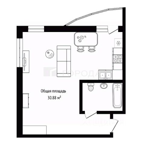 Общей площадью 30 м.кв. (сам объект, не считая мест общего пользования).