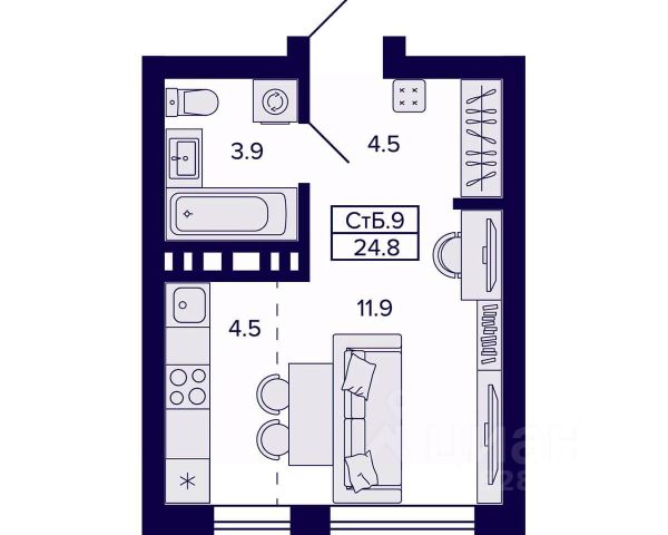 • ✅ Минимальная площадь: 17,4 м²