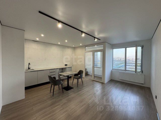Ремонт: дизайнерский (кварцвиниловое напольное покрытие, на стенах декоративная штукатурка, в санузле широкоформатный керамогранит и система теплого пола, несколько световых сценариев)