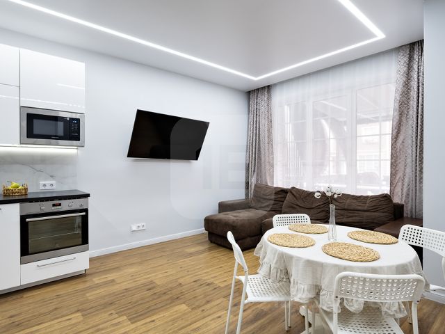 В квартире выполнен современный ремонт с использованием качественных материалов. Состояние квартиры очень хорошее, ремонт делали для себя, поэтому на качестве материалов не экономили.