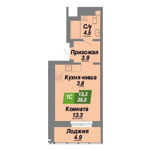 • Возможность подобрать планировку от 20,1 м² м².