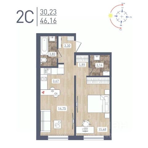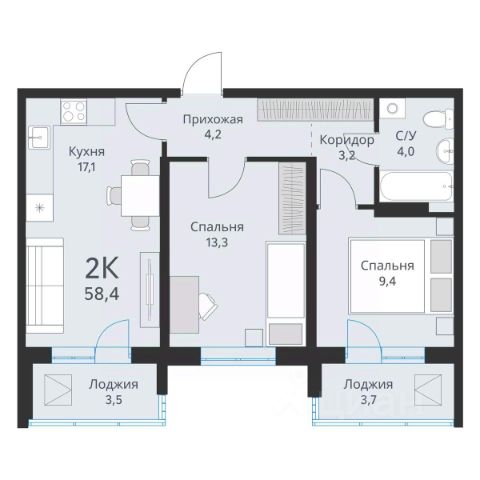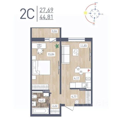Продаётся 2-комнатная квартира в сданном доме (Забалуева, 69 (Дом 9)), срок сдачи: IV-кв. 2024, общей площадью 46.6 кв.м., на 11 этаже. Расположение, транспортная доступность