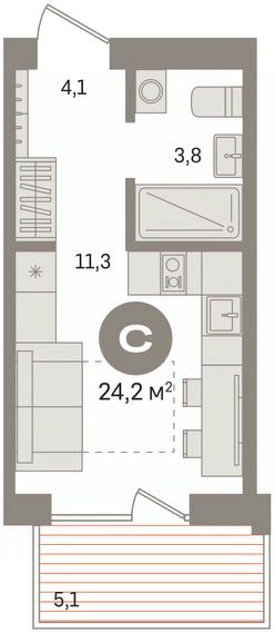 1-комн. студия от застройщика с предчистовой отделкой в ЖК "Пшеница" на 4 этаже. Общая площадь: 20.68 кв.м., площадь гостиной 12.8 кв.м., из которых 5 кв.м. выделено под кухонную зону. Все окна выходят на одну сторону. В квартире один балкон, один совмещенный санузел. Высота потолков 2.82 м. Дом монолитный, многоподъездный, переменной этажности, от 8 до 9 этажей. Квартира находится во 2-й секции высотой 8 этажей в корпусе 6-1. На этаже 10 квартир. В подъезде 1 пассажирский и 1 грузовой лифт. Окончание строительства - 3 квартал 2028 года. Оформление сделки по договору долевого участия. Студия в жилом районе "Пшеница". Особенности планировки: балкон, предчистовая отделка. квартиры в нашей базе: ПШЦ06.1-Ж2.4.7. "Пшеница" расположена в третьем микрорайоне посёлка Краснообск, на пересечении улицы Центральная и Советского шоссе. Посёлок был создан в 1970 году. Архитекторы создали в Краснообске все условия для научной деятельности, быта, культурного развития, отдыха и поддержания здоровья жителей. Но их проект так и не был полностью реализован. Сегодня рядом с проектом "Пшеница" расположены остановки транспорта, выезды на транспортные магистрали. До Бугринского моста — 15 минут на автомобиле. До станции метро "Площадь Маркса" — 35 минут на автобусе, 20 минут на автомобиле. В 1520 минутах от жилого района расположен крупный ТРЦ "Мега". Внутри посёлка сформирована необходимая инфраструктура: лицей, школы, детские сады, больница, поликлиника, частные медицинские центры, магазины, спортивные клубы. Рядом находится лесопарк им. академика Синягина. Район "Пшеница" — это квартальная среднеэтажная застройка с закрытыми от машин безопасными дворами. В основу проекта мы заложили три принципа. Первый — разнообразие и плотность. Для нас важно создать среду, где человек в шаговой доступности мог бы получить любой сервис. Второй принцип — сохранение истории места, уважение к идеям первых архитекторов ВАСХНИЛа и локальной идентичности. Достопримечательностью района станет круговой бульвар. Третий принцип — связанность. Район постепенно станет единым целым за счет организации плотной сети вело- и пешеходных маршрутов, формирования разнородных общественных пространств. Если Вы - риелтор, пожалуйста, за более подробной информацией обратитесь на горячую линию на нашем официальном сайте. #zsba8O Квартиры-студии первичка в Новосибирском районе Новосибирской области.