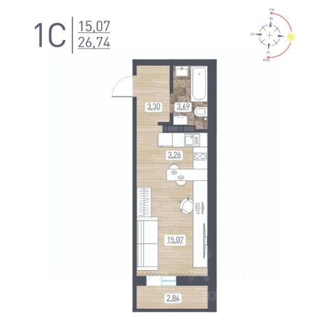 Продаётся студия в сданном доме (Забалуева, 69/2 (Дом 11)), срок сдачи: IV-кв. 2025, общей площадью 25.55 кв.м., на 1 этаже. Расположение, транспортная доступность Жилой комплекс "Радуга Сибири", занимающий территорию 10,4 га, расположен на берегу озера, в Ленинском районе Новосибирска. Это экологически благоприятный регион на левом берегу Оби. В двадцати минутах пешком находится железнодорожная платформа пригородного направления "Ипподром". Электричка доезжает до центра Новосибирска за 25 минут. От комплекса организовано движение маршрутного такси 12, на котором можно доехать до центра Левобережья (метро "Площадь Маркса") и главного железнодорожного вокзала Новосибирска. Путь на автомобиле до площади Маркса или международного аэропорта займет пятнадцать минут, до центра Новосибирска - двадцать минут. Район развивается: по соседству с "Радугой Сибири" построен жилой микрорайон "Чистая Слобода", планируется расширение Порт-Артурской улицы, продление улицы Титова. В 2016 году было запущено движение скоростного трамвая. Инфраструктура В цокольных этажах домов находятся коммерческие помещения. Вблизи комплекса "Радуга Сибири" расположены два детских сада, строится школа, планируется открытие поликлиники. За двадцать минут можно дойти до общеобразовательной школы 86 - в ней был построен спортивный зал и сделан ремонт в 2015 году. В пешей доступности находятся: Дворец культуры "Сибтекстильмаш" с кружками и секциями, Троице-Владимирский собор и Новосибирский ипподром. Вблизи ЖК много зеленых насаждений, пешком можно дойти до парка и сквера. На расстоянии 3 км от комплекса расположены МНТК "Хирургия глаза" им. С.Н Федорова, плавательный бассейн и спорткомплекс "Заря" со стадионом, зимним катком, футбольными и хоккейными площадками. Надежность застройщика Проект комплексной застройки "Радуга Сибири" реализует ООО "Развитие", которое создано в 2012 году и входит в состав промышленно-строительного концерна "Сибирь". Концерн работает с 1990 года, среди завершенных объектов - жилые комплексы "На Рябиновой", "Нарымская Жемчужина", "Тулинское", "Березовое". В 2012 году компания заняла первое место среди застройщиков Новосибирска по объемам ввода жилья. Градостроительный план ЖК "Радуга Сибири" был разработан в 2015 году, в июле этого же года выдано разрешение на строительство. Архитектура Жилой комплекс "Радуга Сибири" - это восемь монолитных 17-этажных домов. Здания возводятся по традиционной монолитной технологии: перекрестно-стеновая система с несущими монолитными продольными и поперечными внутренними стенами, объединенными железобетонными перекрытиями. При строительстве применяется тоннельная опалубка Teknik-L. Квартиры сдаются с предчистовой отделкой, качественными деревянными стеклопакетами, улучшенной шумоизоляцией. Стены выровнены и оштукатурены, полы выровнены. В квартирах выполняется разводка электричества и вертикальная разводка системы отопления, подводятся трубы холодной и горячей воды, канализации, устанавливаются счетчики на электроэнер