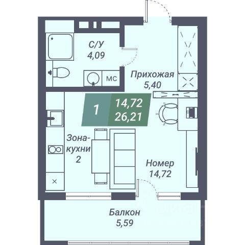 В продаже студия-aпаpтаменты общей площадью 25,8м. в домe VОRОSНILOV.