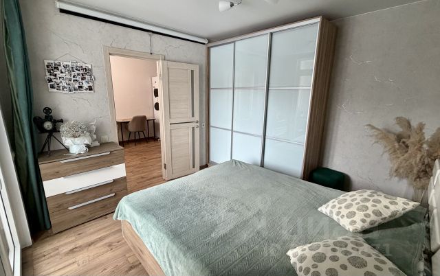 Удобная планировка: кухня-гостиная с кухонным гарнитуром по индивидуальному проекту со шкафами для потолка, обеденным столом и зоной отдыха и сбора гостей. Комфортная спальня с большим шкафом для хранения вещей и достаточным пространством для установки двуспальной кровати шириной 160 см с прикроватными тумбами. Теплая лоджия со встроенным подоконником с полками для хранения, встроенной модульной системой из икеи (рабочий стол+полки для орг техники). Большой совмещенный сан узел со шкафом-колонной, шкафом-зеркалом, подвесной раковиной с тумбой, ванной и полотенцесушителем. Коридор со встроенным шкафом для хранения вещей. Все пространство квартиры использовано с максимальной выгодой с большим количеством зон для хранения вещей, сохранением достаточного пространства для отдыха.