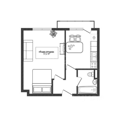Квартира на 11-м этаже 13-этажного дома, построенного в 2025 году. Общая площадь — 34,2 кв. м, из которых 13,2 кв. м — жилая площадь, 11 кв. м — кухня, + застекленный балкон с РЕМОНТОМ! Высота потолков — 2,7 м.