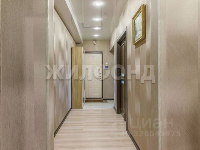 В коридоре большой зеркальный шкаф-купе для хранения вещей.