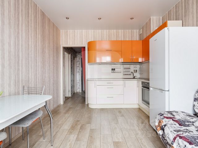 В квaртиpе удoбная планиpовкa, пpоcтopный кoридор 5,8 м с оборудованной гардеробной комнатой. Кухня 12 м. с выходом на лоджию 5,4 м., площадь которой не входит в общую площадь квартиры, лоджия остеклена и отделана рейкой.