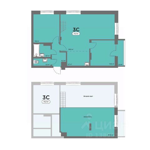 • ✓ Самая большая площадь: 73,2 м²