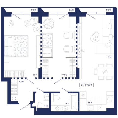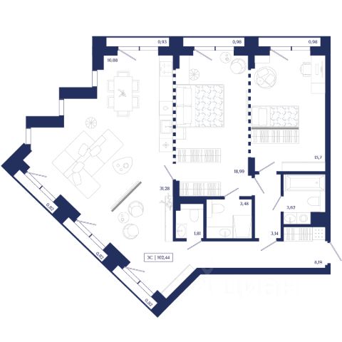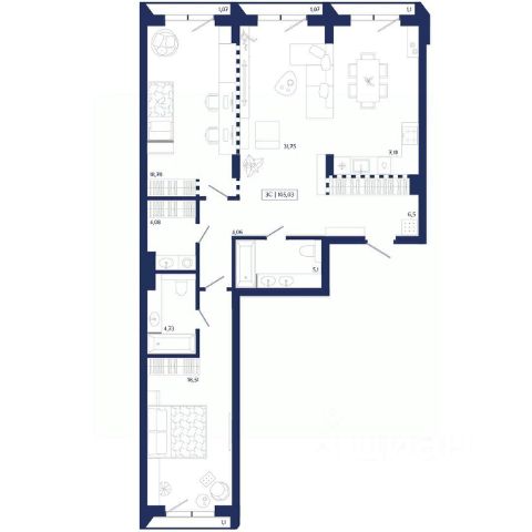 Продаётся 3-комнатная квартира в строящемся доме (Секция 1.1), срок сдачи: IV-кв. 2026, общей площадью 105.03 кв.м., на 7 этаже. Unity Center — квартал бизнес-класса в "золотом" центре Новосибирска. Архитектура в стиле модернистского экспрессионизма, непревзойденный уровень комфорта, элитная локация и премиальное окружение. Девелопер "Юнити" объединил лучшие мировые практики и создал проект для тех, кто ценит время и навсегда остается преданным ритму центра мегаполиса. — Квартал возводится в историческом центре локации, в 5 минутах от площади Ленина; — Уникальная концепция остекления делает здание заметным за десятки километров; — Эксклюзивные планировочные решения с многоуровневыми витражами и видами на закатное небо; — Приватная территория с функциональными зонами для досуга и высококлассным ландшафтным озеленением. Unity Center — живите насыщенно, живите в центре!