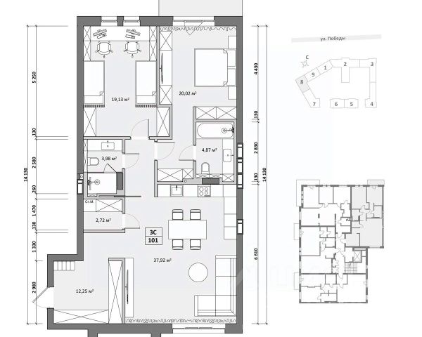 *Квартира продаётся с встроенной мебелью и с встроенной бытовой техникой (электрическая печь, духовой шкаф, микроволновая печь, посудомоечная машина).