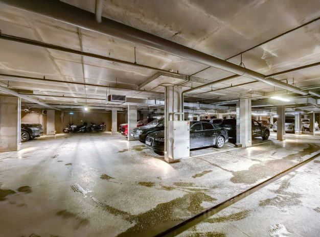 Парковочное место в доме Aurum. Парковка оформлена в собственность, никаких обременений, документы готовы к сделке. Выход на парковку из лифта дома. Место расположено вдоль широкого проезда с упором в стену, возле которой можно оставить шины на хранение.