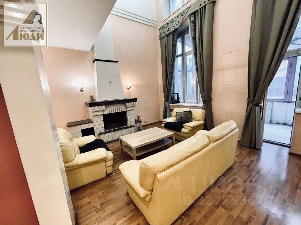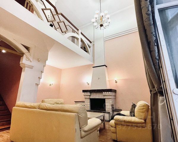 Второй этаж. Сердце квартиры-дома - двусветный каминный зал с арочными окнами второго света и семиметровой высотой потолка. Пространство с действующим камином и выходом на застекленную лоджию.