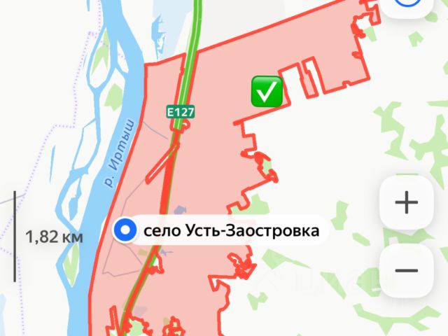 Продаю отличный земельный участок 26 соток в селе Усть-Заостровка . Участок ровный, без строений, правильной формы. До границы участка асфальтированная дорога, электричество и газ проходят вдоль границы участка, водопроводный колодец на границе участка. При строительстве можно устраивать заезд на участок двух сторон, так как он угловой. Возможно участок разделить на двух собственников и построить дом на двух хозяев. Возможна продажа части участка. До Иртыша расстояние примерно 50-70 метров , проход (проезд) к реке ничем не ограничен, и ограничен не будет, поскольку по плану там проезд. Продаю в связи с изменением личных планов. Ориентир участка: смотрите по картам рядом с домом ул. Песочная 1 . Обременений нет, один собственник.