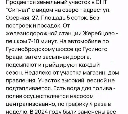 Продаётся земельный участок в СНТ Малыш Участок в собственности Расположение: * Всего 5 минут пешком до реки Иня - отличное место для прогулок, рыбалки и отдыха на природе * В 10 минутах ходьбы находится железнодорожная станция Паровозный - удобная транспортная доступность Преимущества участка: * Ровный рельеф - удобно для строительства * Тихое, живописное место * Доброжелательные и спокойные соседи * Идеально подходит для отдыха от городской суеты Прекрасный вариант для тех, кто ищет уютное место на природе с удобным доступом к транспорту. Звоните / пишите - отвечу на все вопросы и организую показ!