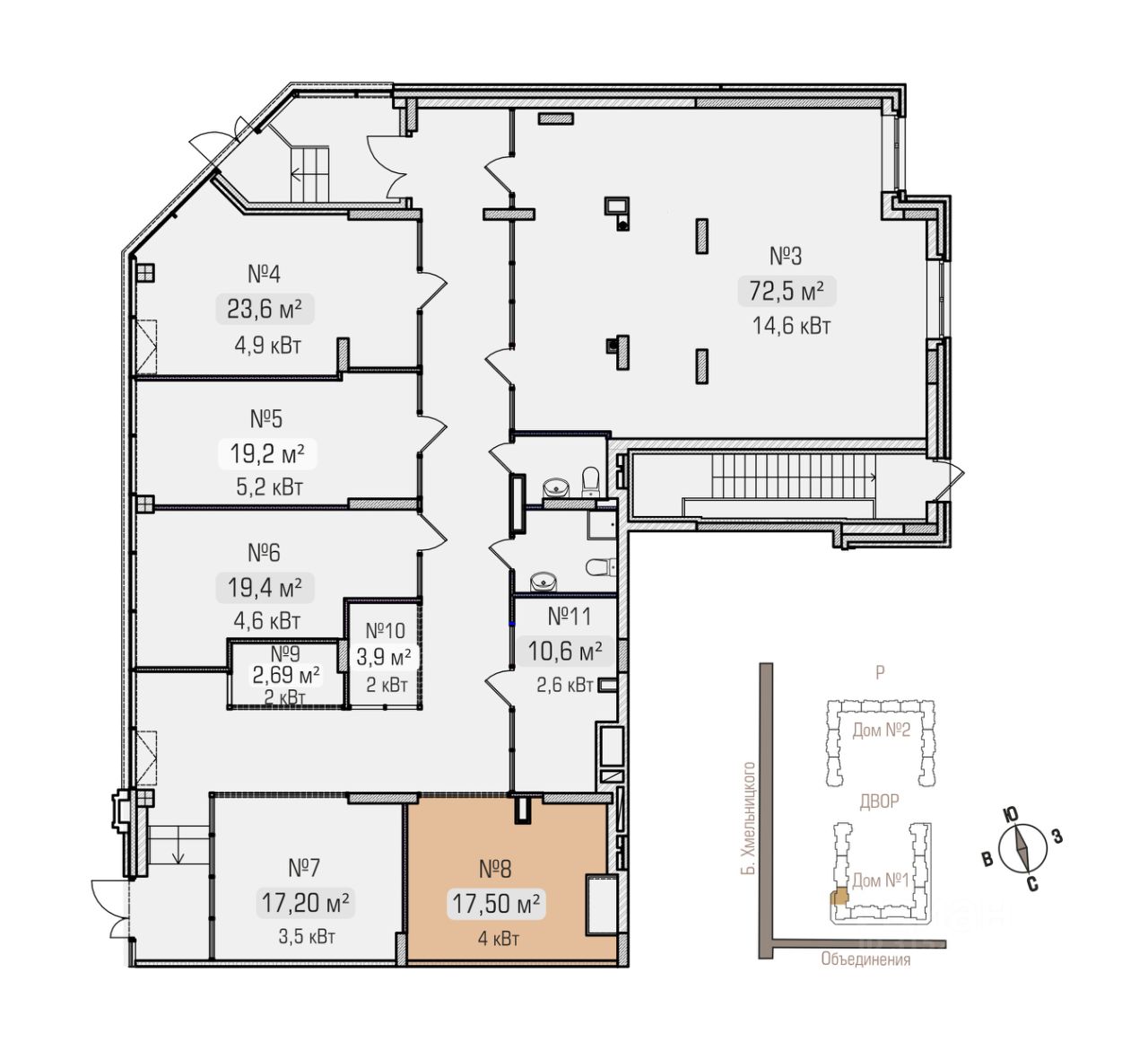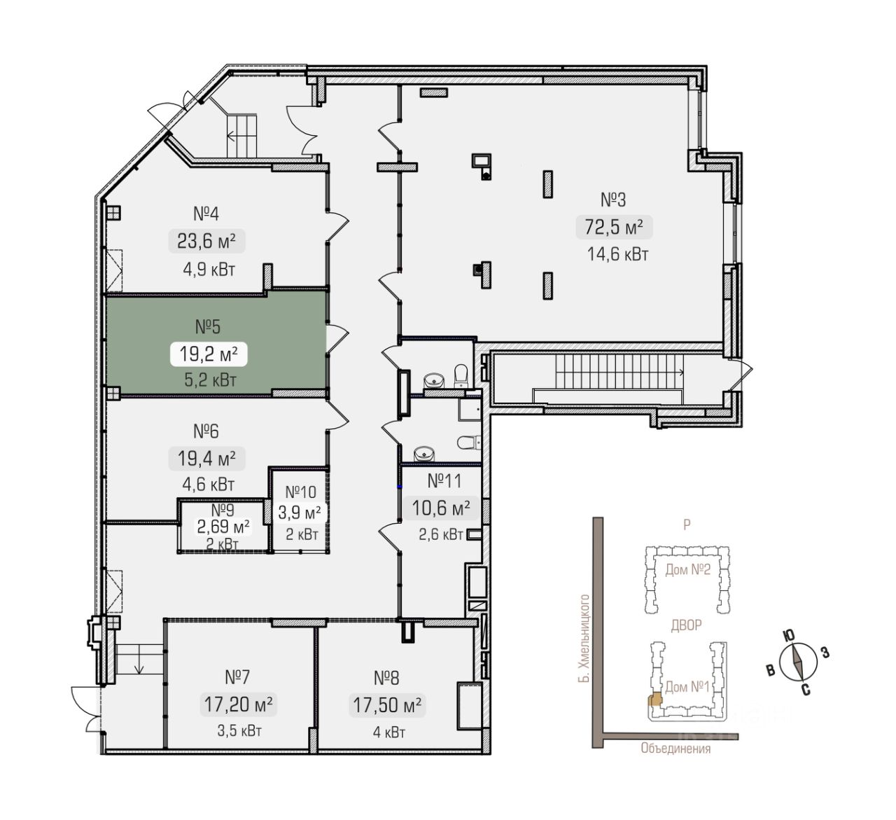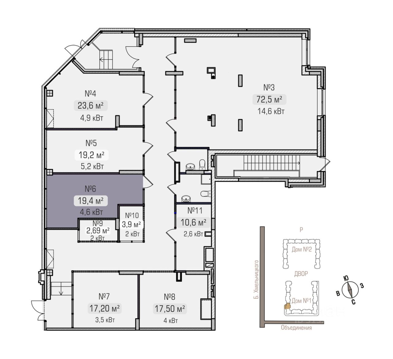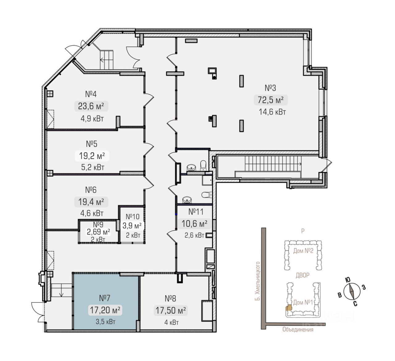 Акция на помещение 72,5 кв.м (3 на плане):