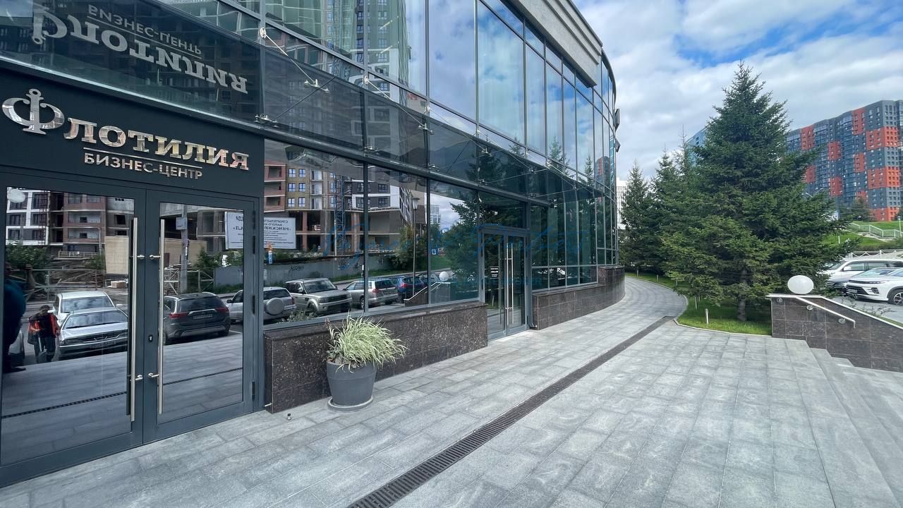 Помещение расположено на 1 этаже здания, оснащено тремя собственными входными группами: Центральная, презентабельная входная группа - в непосредственной близости от входа в БЦ "Флотилия" ориентированная на ул. Сибревкома , дополнительная входная группа через холл БЦ и вход для погрузо-разгрузочных работ со стороны парковочной зоны комплекса. Помещение очень светлое за счет большого количества фасадного остекления. Высокие потолки (4,2м). В помещении выполнен качественный, дизайнерский ремонт, на полу и частично на стенах керамогранит. Имеется стеклянная переговорная или кабинет руководителя.