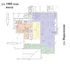 Сдается в аренду помещение свободного назначения. Отдельный въезд с ул. 1905 года. Отдельных вход из торговой галереи "Клевер", якорным арендатором которой является супермаркет SPAR, магазин парфюмерии и косметики SuperMAG, спортзал Oldschool Gym.