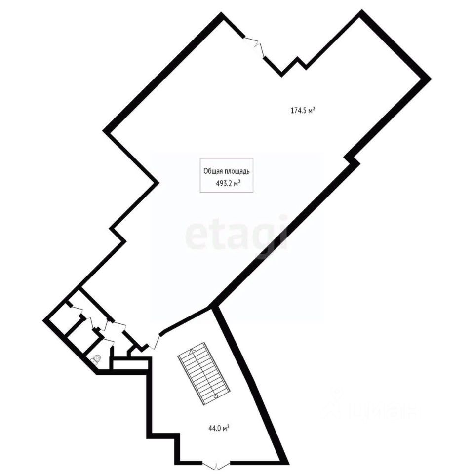 Помещение имеет два уровня, соединенных лестницей. Так же имеется лифт для перемещения между этажами. Помещение можно разделить.