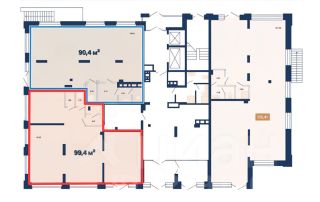 Есть возможность объединить это помещение с соседним помещением, площадью 90,4 кв.м, и получить бОльшее помещение, площадью 189,8 кв.м, с двумя входами, с мощностью 40 кВт.