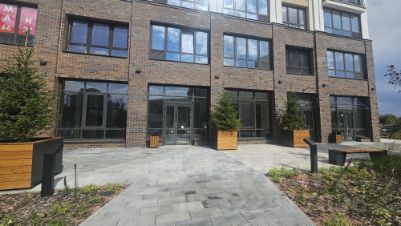 Лучшее помещение в данном ЖК с точки зрения визуальных характеристик: угловое, с хорошей просматриваемостью. По данному критерию помещение выглядит лучше, чем любое торговое "утопленное вниз" помещение в ЖК "Авиатор" или в соседних домах.