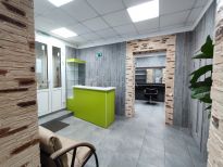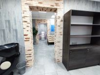 Удобная планировка: помещение разделено на 2 зала по специфике предоставляемых услуг, входная группа оборудована стойкой администратора, витриной, сан.узел, кухня для персонала.