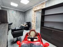 Спец. мебель (2 парикмахерских кресла, парикмахерское кресло для малышей, кресло для мытья головы, 3 рабочих стола для маникюра, кресло для педикюра шкафы и тумбы для хранения инструментов, расходных материалов и оборудования, диван для посетителей);