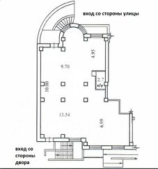 Два входа: со двора и со стороны реки (то есть с улицы). Свободная планировка.
